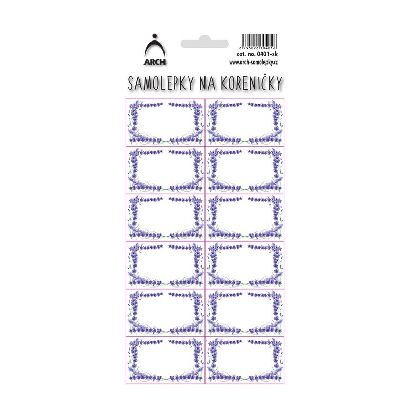 - Samolepky jsou vyrobeny na bílém podkladu s výrazným levandulovým rámečkem.