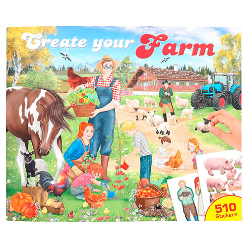 Oblíbený kreativní 24 stránkový sešit v deskách v jedinečném designu kolekce Create Your. Desky obsahují sešit s předkreslenými obrázky farmy, které si můžete sami navrhnout! K dispozici jsou archy samolepek se zvířátky, farmáři a nejrůznějšími potřebami a doplňky na dotvoření pravé farmy podle Vašich představ.Kreativní sešit z mimořádně oblíbené značky Create Your si zamilují všechny děti!Rozměry: 25 x 30 x 0.5 cm.Vhodné pro děti od 3 let.