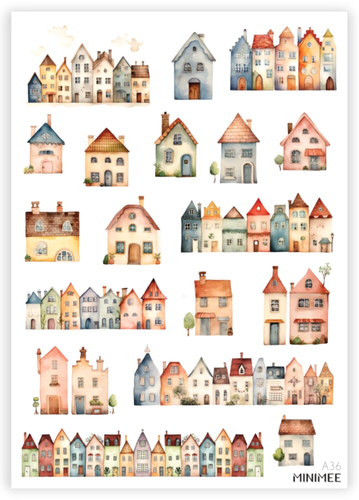 Přidejte vašim zápiskům jedinečný kouzelný detail! Tyto krásné vyřezávané samolepky s motivem domečků promění vaše zápisníky i deníky v malé dílo umění.