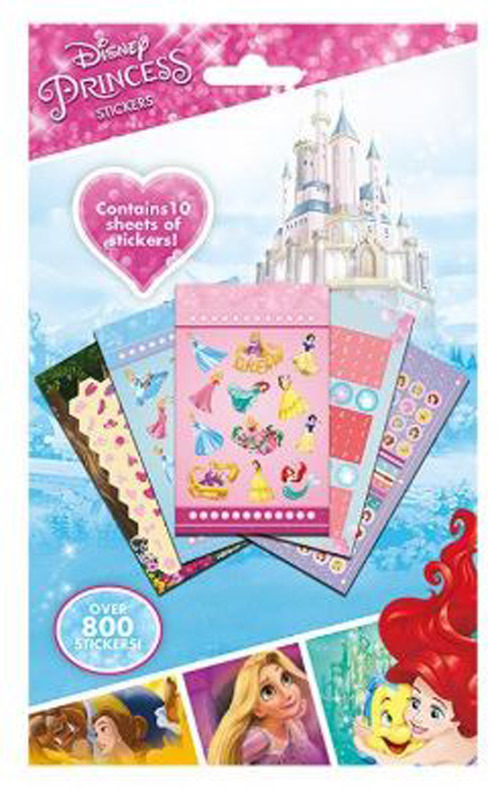 Oficiální samolepky a doplňkové zboží z katalogu produktů s logem, fotografiemi a grafikou Disney Princess.