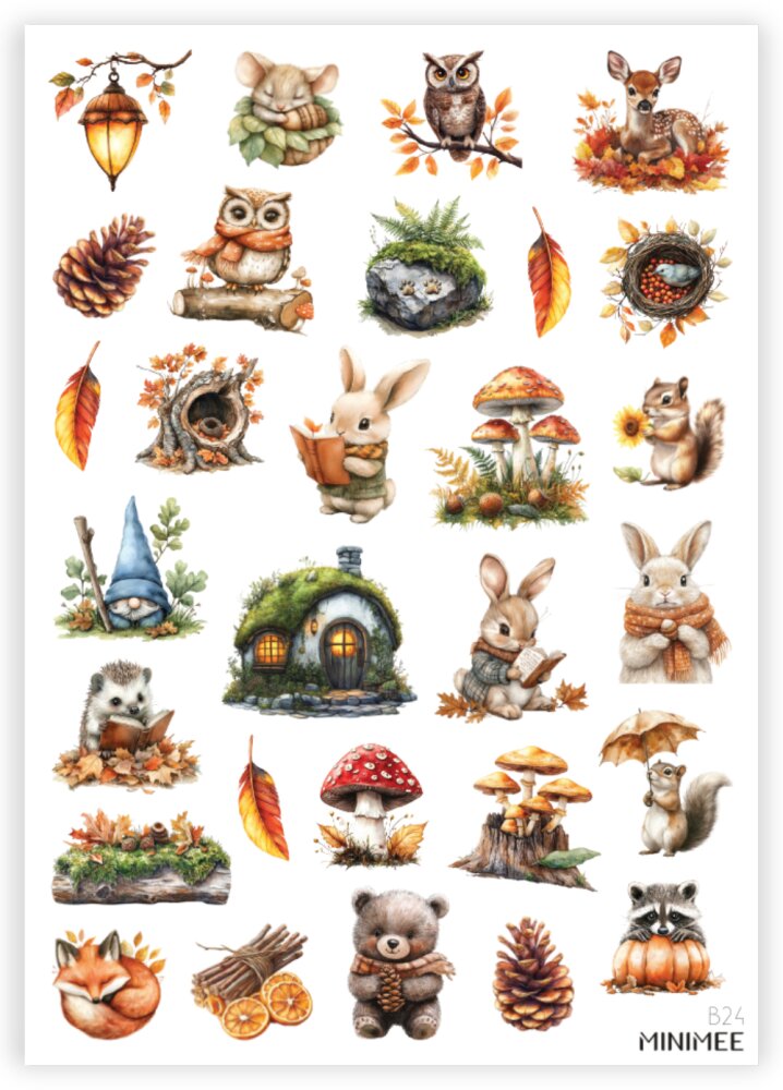 Originální vyřezávané samolepky v aršíku A5. Aršík je plný krásných motivů, které dozdobí jakýkoliv zápisník. Perfektně se hodí k papíru zápisníku MINIMEE. Kvalitní bílá samolepka matného, přírodního vzhledu.