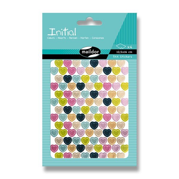 Samolepky Maildor Initial Metallic menší velikosti s motivem srdíček s metalickým efektem. Balení obsahuje 4 listy, 2 motivy po 2 ks.Rozměry balení: 10,5 x 16 cm.
