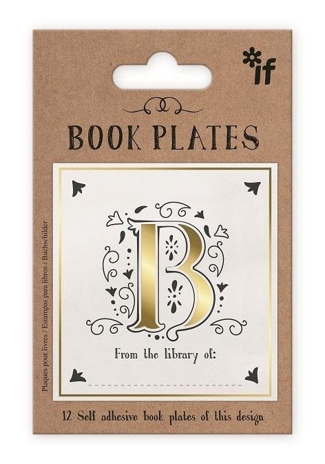 Zestaw 12 samoprzylepnych ekslibrisów z literą B. Naklejki są złocone. Całość zapakowana w eleganckie opakowanie kraft. Doskonały dodatek do prezentu dla mola książkowego.