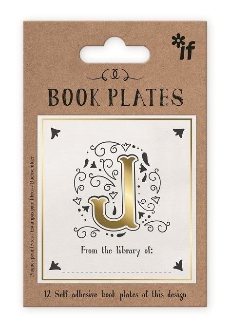 Zestaw 12 samoprzylepnych ekslibrisów z literą J. Naklejki są złocone. Całość zapakowana w eleganckie opakowanie kraft. Doskonały dodatek do prezentu dla mola książkowego.