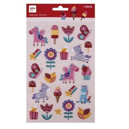APLI Kids: Samolepky s motivem květin a jednorožce. Sada obsahuje: 16 samolepek Ideální pro scrapbooking, lepení na knihy a složky, zdobení alb, dopisů, pozvánek a pohlednic, vytváření příběhů nebo personalizaci objektů. Hodiny zábavy pro děti a zároveň rozvíjení jemné motoriky a stimulace jejich kreativity, vynalézavosti a schopnosti vyprávění.