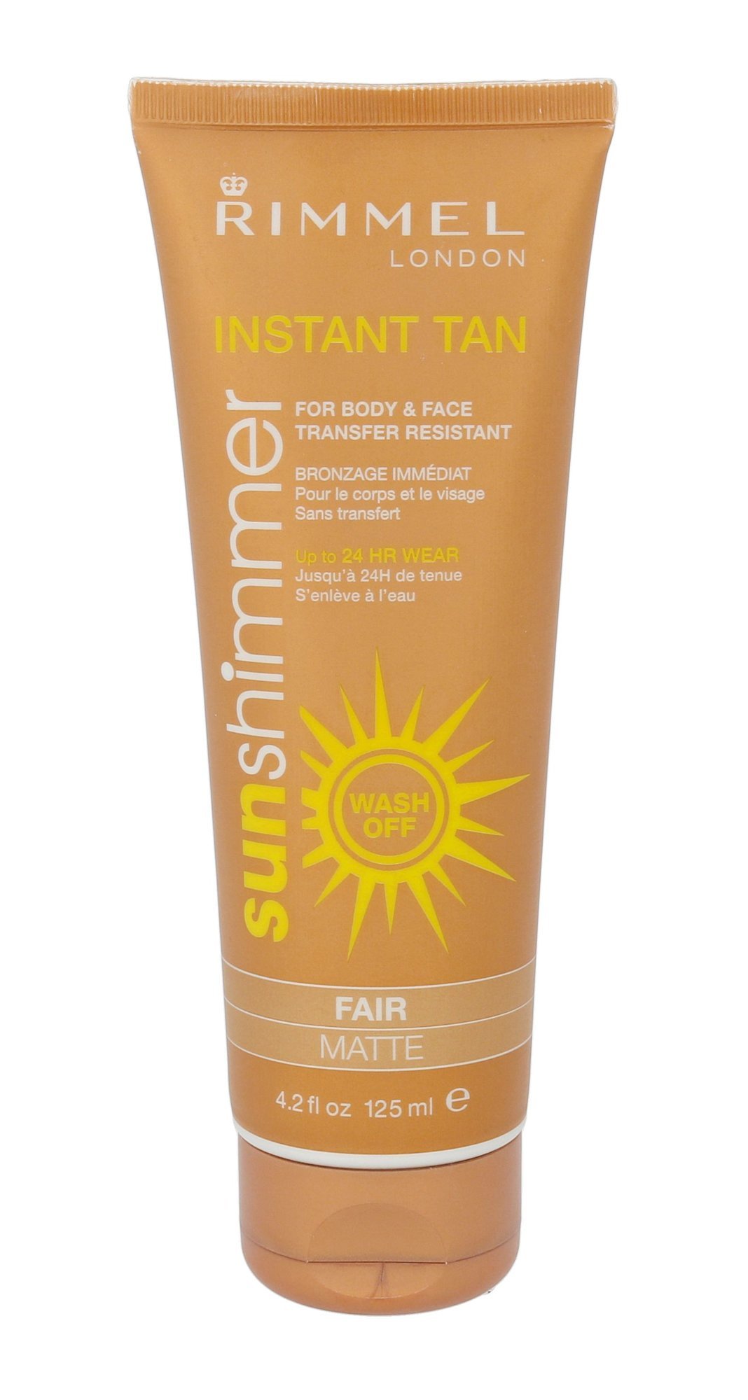 Bronzer na obličej a tělo **Rimmel London Sun Shimmer Instant Tan**.