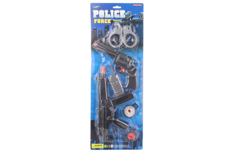 Sada pro malého policistu. Obsahuje samopal, vysílačku, pouta, kompas a hodinky. Materiál plast. Rozměr balení cca 21 x 58,5 x 3 cm. Rozměr samopalu cca 29 x 14,5 cm. Věk 3+