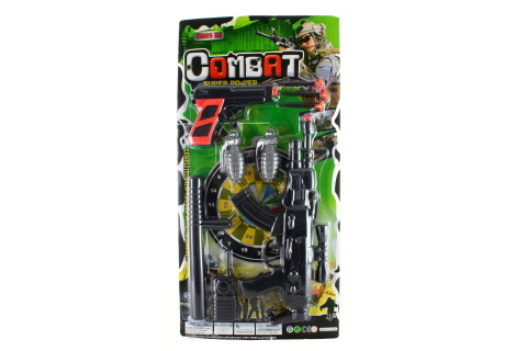 Sada obsahuje samopal, pistoli, obušek, vysílačku, dva granáty a tři náboje s přísavkami. Rozměr samopalu cca 35 cm. Rozměry balení cca 56 x 28 x 3 cm. Věk 3+
