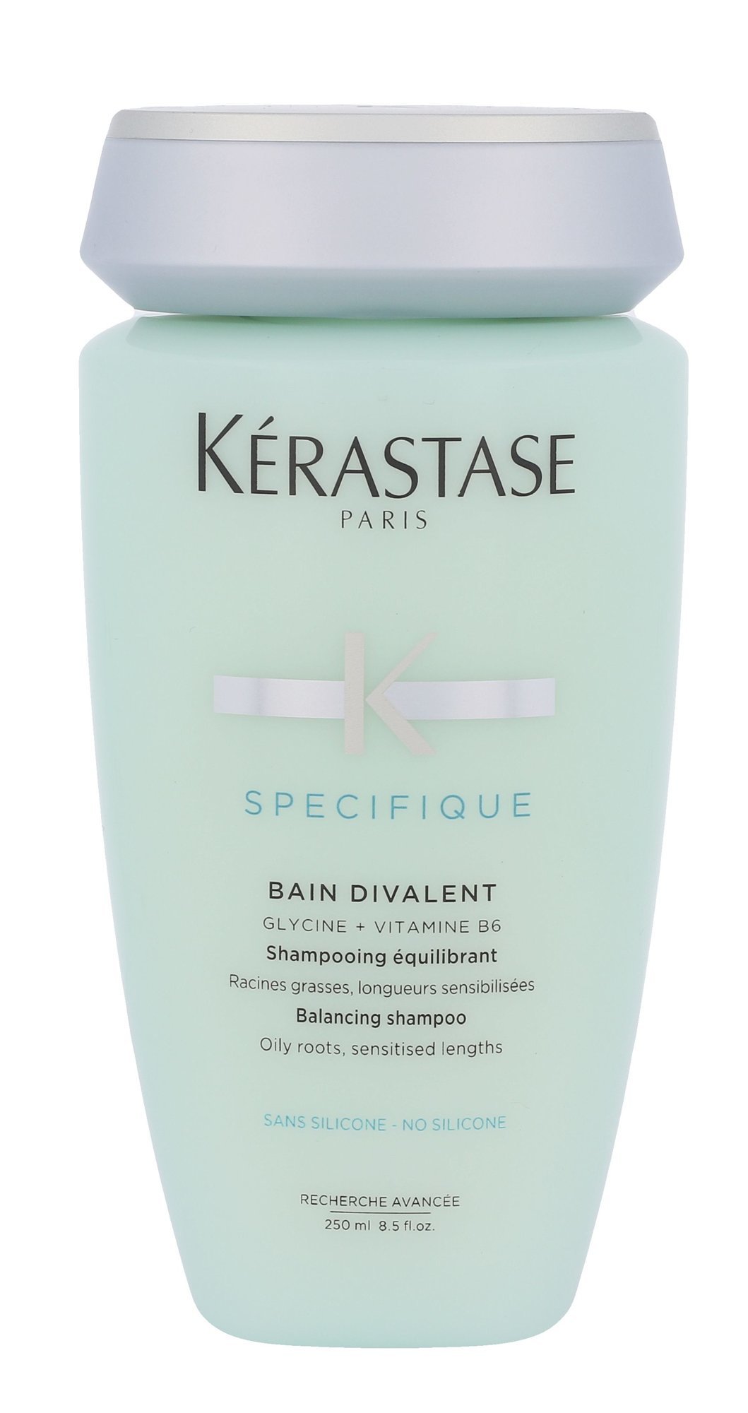 Šampon** Kérastase Spécifique Bain Divalent**. Šampon Kérastase Spécifique Bain Divalent vyrovnávající rozdíly mezi mastnou pokožkou, vlasy a konečky vlasů. Ošetřené vlasy budou svěží, čisté, zářivé, dokonale sjednocené a vyživené. **Použití**: Naneste na mokré vlasy a jemně masírujte. Na závěr důkladně opláchněte. V případě potřeby lze opakovat.