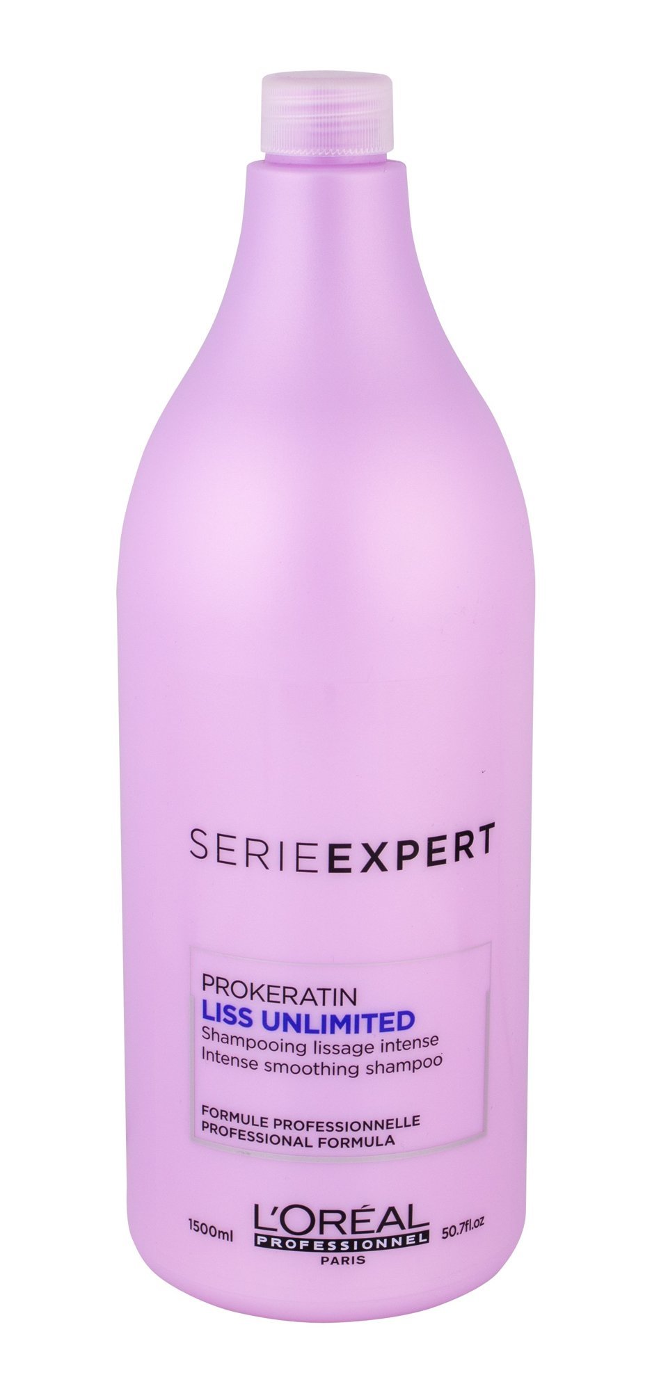Šampon pro uhlazení nepoddajných vlasů **L´Oreal Paris Expert Liss Unlimited**. Uhlazující šampon s komplexem Keratinoil, výtažkem z Kukui a olejem z pupalky dvouleté dodává vlasům extra lesk a hebkost, chrání vlasy před vnější vlhkostí, intenzivně bojuje proti krepatění a usnadňuje rozčesávání vlasů. Pro-keratin vyplňuje mezery ve vlasech a vyhlazuje vlasová vlákna. **Použití**: Aplikujte na mokré vlasy a jemnou masáží vytvořte pěnu. Poté pečlivě opláchněte.