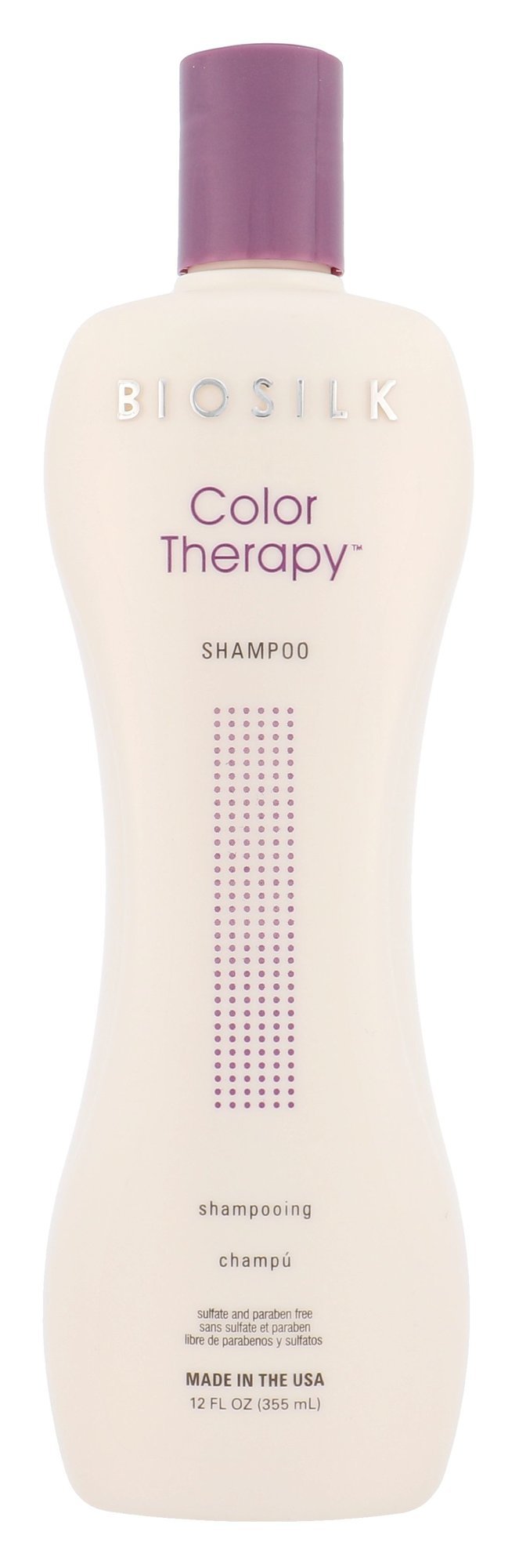 Šampon pro barvené vlasy **Farouk Systems Biosilk Color Therapy Shampoo**. Šampon SFarouk Systems Biosilk Color Therapy Shampoo jemně čistí vlasy a odstraňuje veškeré nečistoty. Složení je obohacené o rooibos, bambusové výtažky a proteiny, které chrání barvu vlasů a zabraňují jejímu vymývání. **Použití**: Aplikujte do vlhkých vlasů. Jemně vmasírujte a poté důkladně opláchněte.