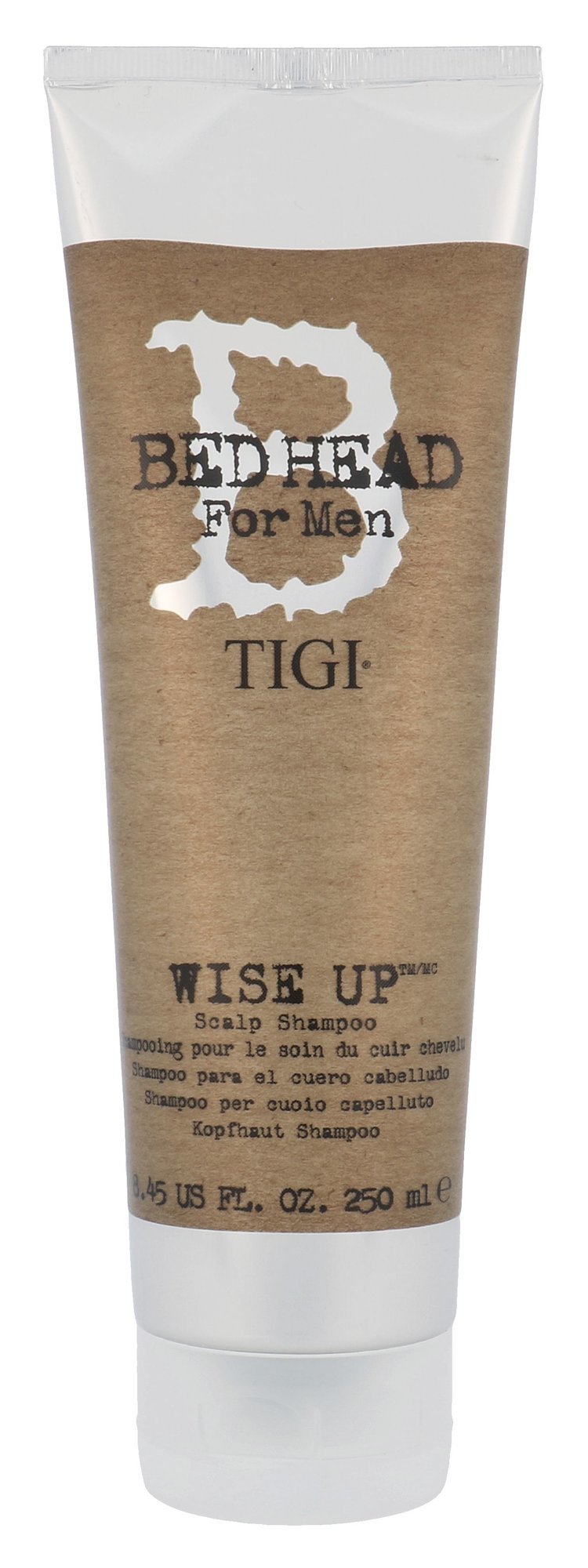 Šampon **Tigi Bed Head Men Wise Up Scalp Shampoo**. Šampon Tigi Bed Head Men Wise Up Scalp Shampoo dokonale čistí vlasy a odstraňuje veškeré nečistoty. Stimuluje cirkulaci a podporuje růst vlasů. **Použití**: Aplikujte na vlhké vlasy. Jemně masírujte a poté důkladně opláchněte.