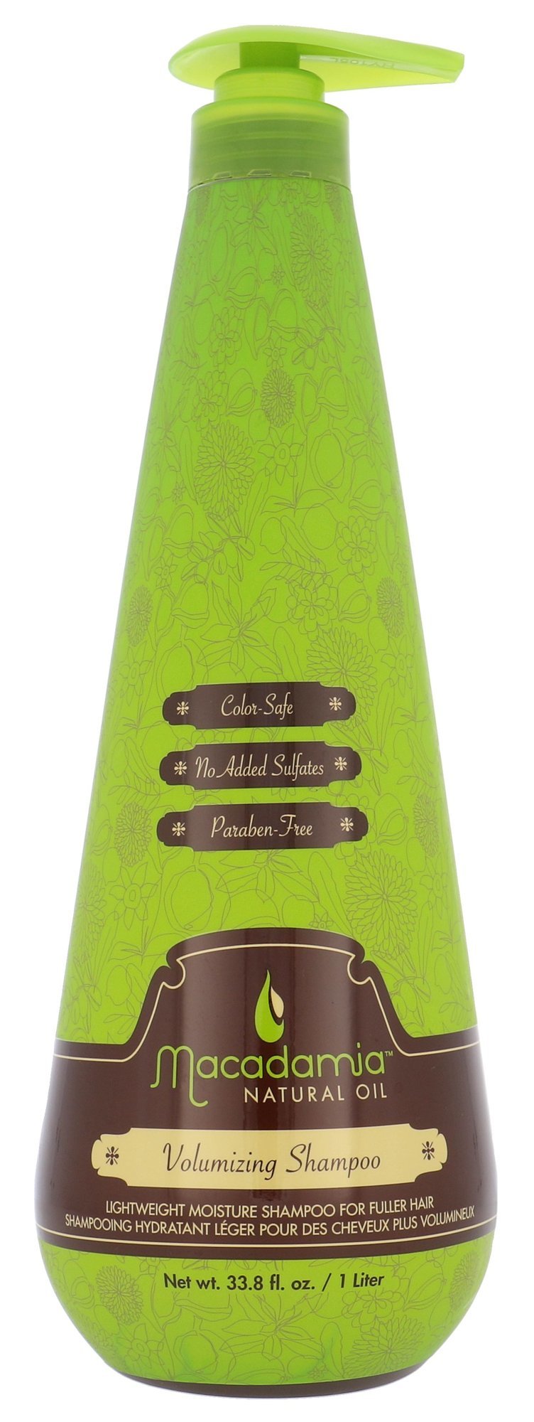 Jemný šampon **Macadamia Professional Natural Oil Volumizing Shampoo**. Šampon Macadamia Professional Natural Oil Volumizing Shampoo okamžitě dodává vlasům objem a tvar. Šetrně rozčesává vlasy a dodává jim objem a plnější vzhled. Šetrně vlasy čistí a odstraňuje veškeré nečistoty. Zanechává vlasy svěží a plné objemu. **Aktivní látky**: · makadamiový olej · polymerová směs **Použití**: Aplikujte na mokré vlasy. Jemně masírujte a poté důkladně opláchněte.
