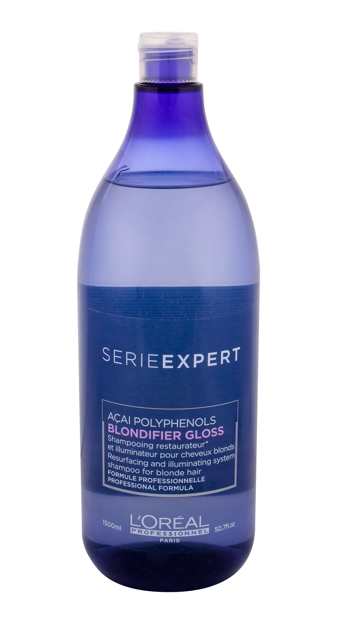 Rozjasňující šampon **L´Oréal Professionnel Série Expert Blondifier Gloss**. Šampon pro blondýnky s technologií Acai Polyphenols - polyfenoly z bobulí Acai, které vlasy účinně vyživují, zvyšuje jejich zářivou blond barvu a zároveň je hydratují. S šamponem Blondifier Gloss budou vaše vlasy zářit jako nikdy před tím. **Použití:** Aplikujte na vlhké vlasy. Jemně masírujte a poté důkladně opláchněte.