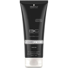 **Schwarzkopf BC Bonacure Fibreforce Shampoo** šampon pro silně poškozené vlasy. Posiluje poškozené vlasy. Obsahuje keratiny, které jsou identické s keratiny, které se přirozeně nacházejí uvnitř vlasového vlákna. Keratiny pronikají hluboko do struktury vlasů a znovu vlasy vystavují a vytvářejí membrány. **Použití:** Vmasírujte do vlhkých vlasů, nechte krátce působit a důkladně opláchněte.