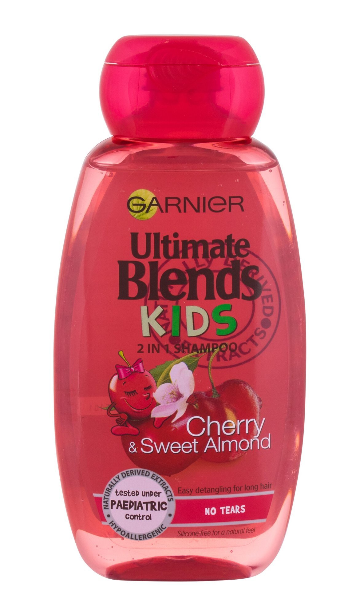 Objevte jemný dětský šampon Garnier Ultimate Blends Kids Cherry, který šetrně smývá nečistoty a neštípe do očí. Zanechává vlásky snadno upravitelné, bez zacuchání a provoněné třešněmi a sladkými mandlemi.