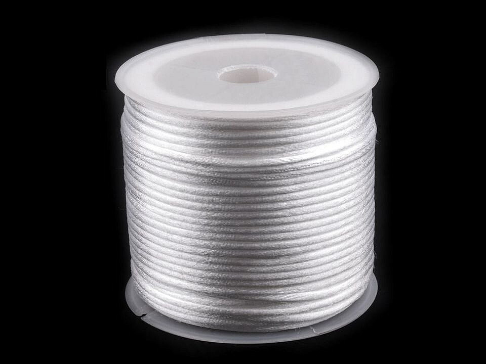 Saténová šňůra je velmi kvalitní a pevná.Použití: Šňůru můžete použít jako návlekový materiál na větší korálky. Pokud rádi tvoříte originální výrobky, tak ji určitě využijete na výrobu náramků, náhrdelníků nebo opasků pomocí techniky kumihimo a scoubi.