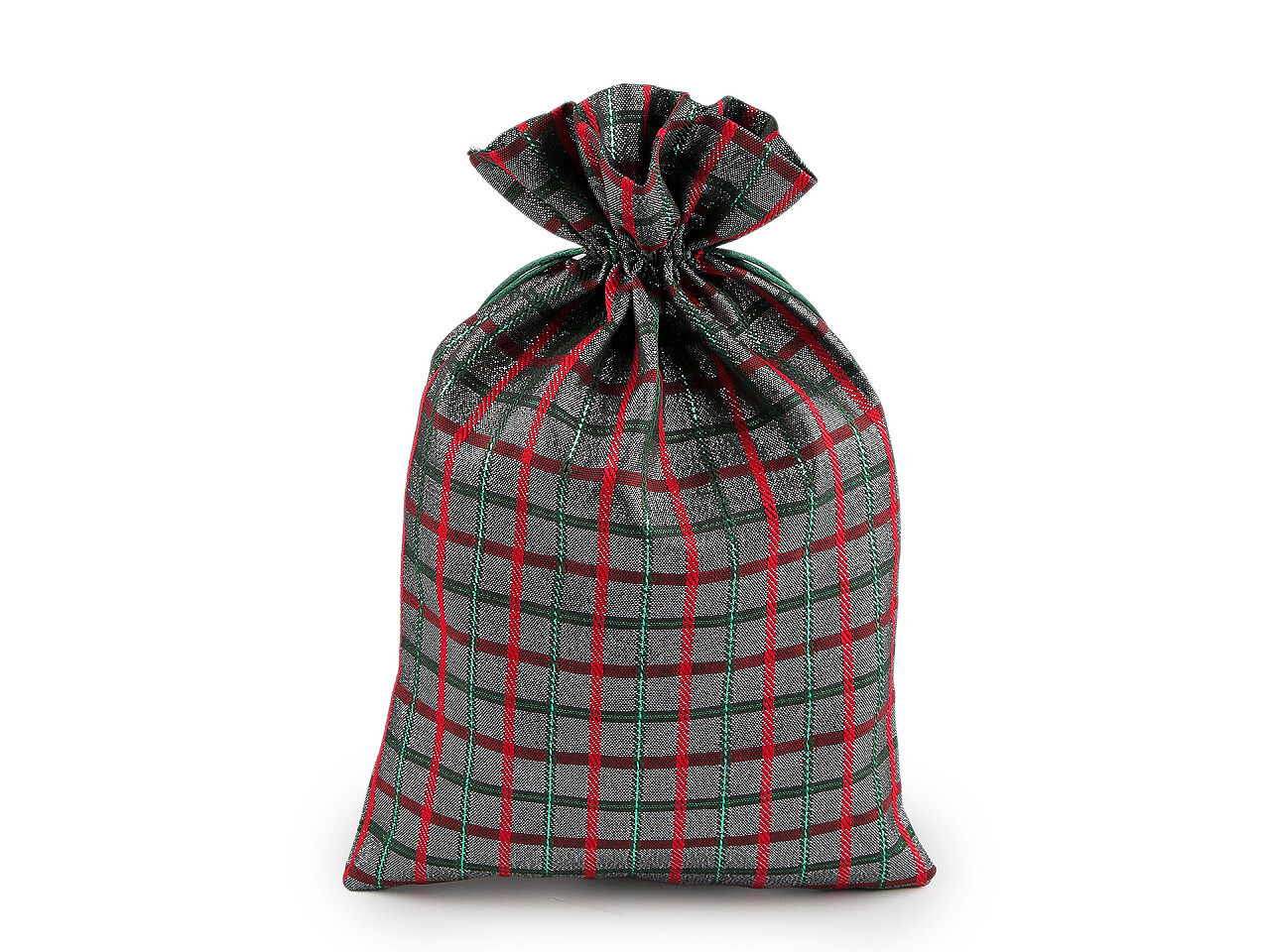 Vánoční dárkový pytlík káro s lurexem 20x30 cm - 10 ks - 1 stříbrná