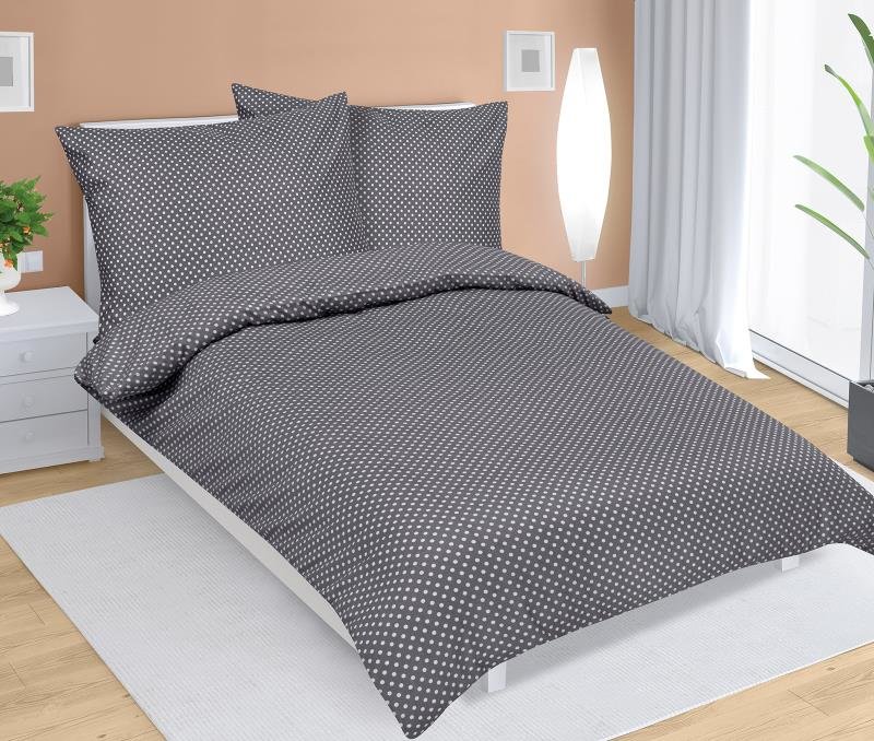Povlečení bavlněný satén - puntík šedý - 140x200,70x90 cm