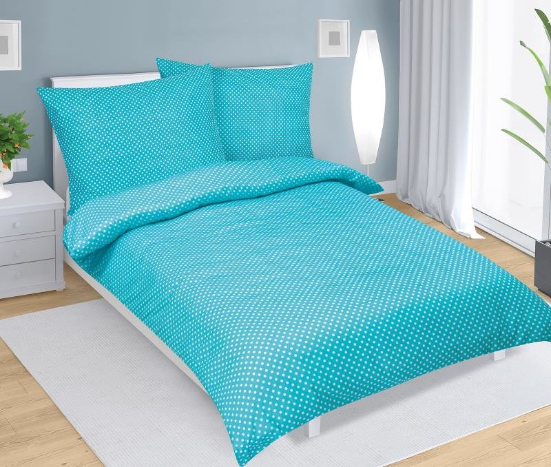 Povlečení bavlněný satén - puntík tyrkysový - 140x200,70x90 cm