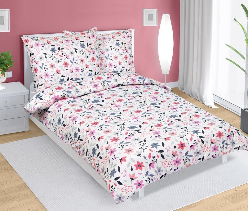 Povlečení bavlněný satén - barevné kvítí - 140x220, 70x90 cm