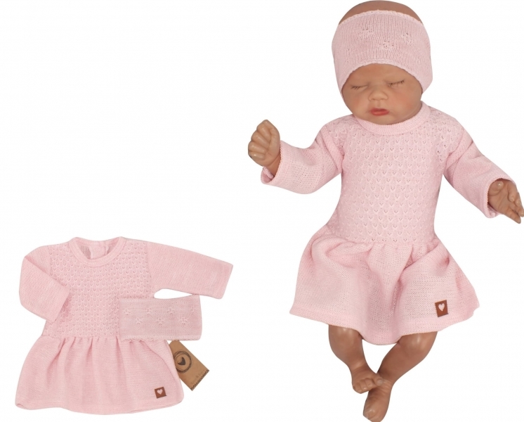 Z&Z 2-dílná soupravička pletené šaty s čelenkou - růžové, vel. 62; 62 (2-3m)