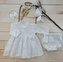 Mušelínové šatičky s Madeira vyšívkou + kalhotky a čelenka 3D, bílé, vel. 68; 68 (3-6m)