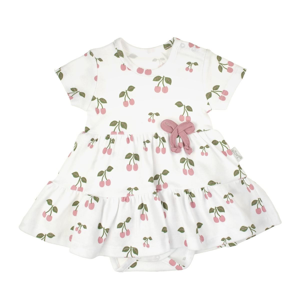 Stylové a praktické kojenecké šatičky-body s krátkým rukávem Nicol Emily. Šatičky Áčkového střihu celopotištěné zajímavým vzorem jsou vhodné na doma i na procházky. Šatičky jsou ušité na styl body a jsou neodmyslitelnou součástí holčičího šatníku. Jsou krásně nařasené. Zapínání na cvočky na ramínku a mezi nožičkama ulehčí oblékání a přebalování. Materiál: 100% bavlna.