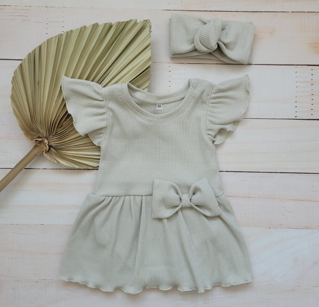 Žebrované sukničkobody s mašlí + čelenka 2D Girl - olivová, vel. 62; 62 (2-3m)