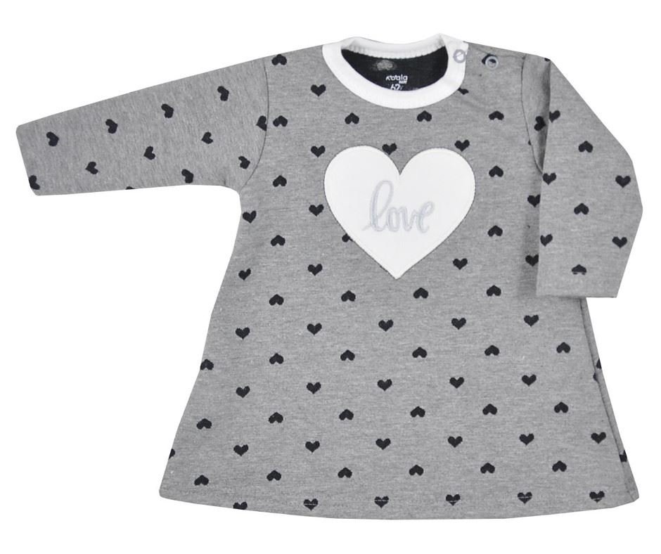 Kojenecké šatičky s dlouhým rukávem Koala Jessica. Šatičky mají oblíbený Áčkový střih a zapínání na ramínku. Jsou celopotištěné srdíčkami a zdobí je velký obrázek srdíčka s nápisem love. Složení: 96% bavlna, 4% polyester. číst celé