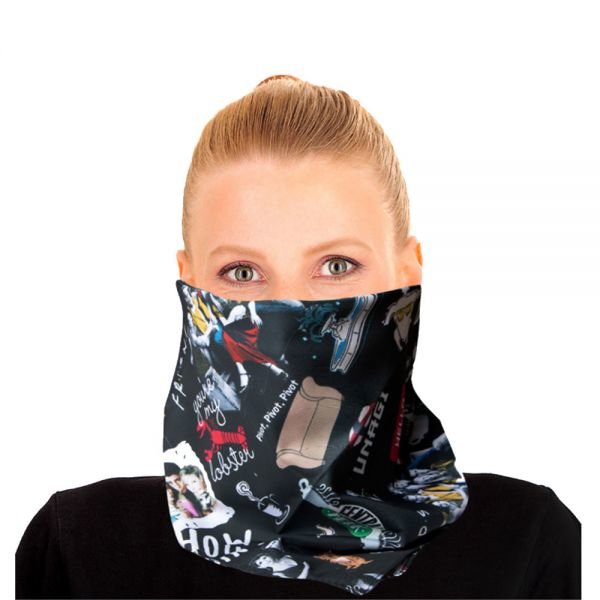 Multifunkční černý šátek s barevnými znaky seriálu Friends a motivy Bandana.