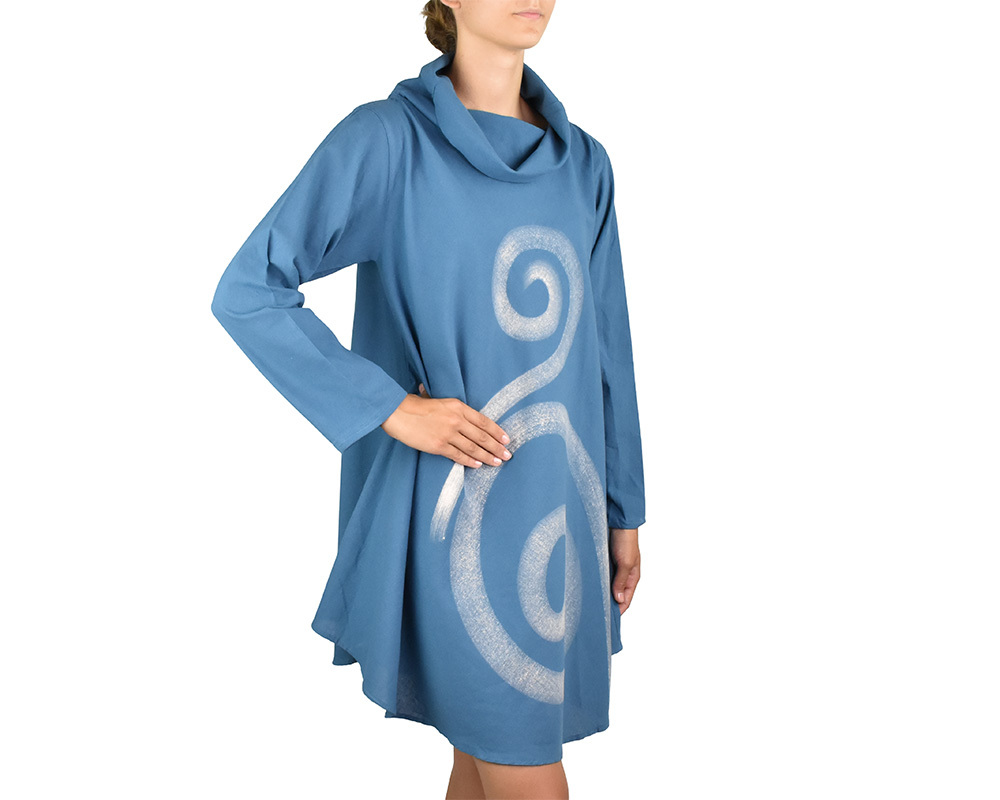Jedinečný kousek, který propojuje pohodlí a moderní design. Šaty ve volném „A“ střihu zaručují maximální komfort i volnost pohybu. Díky dlouhým rukávům a výraznému límci jsou ideální do chladnějších dnů. Variabilní střih dává možnost nosit je buď jako vzdušné šaty nebo jako originální tuniku...