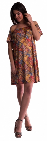 Be MaaMaa Těhotenské šaty s odhalenými rameny - cihlové; XS (32-34)