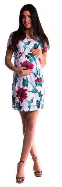 Těhotenské šaty s vázáním s květinovým potiskem.