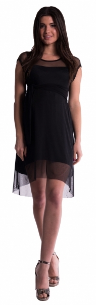 Be MaaMaa Těhotenské šaty se šifonovým přehozem - černé - L; L (40)