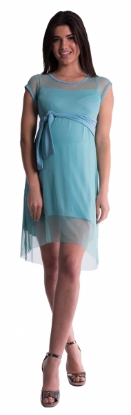Be MaaMaa Těhotenské šaty se šifonovým přehozem - máta; XS (32-34)