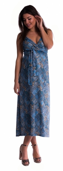 Be MaaMaa Dlouhé těhotenské šaty s ramínky - tm. modré - vel. S/M; S/M