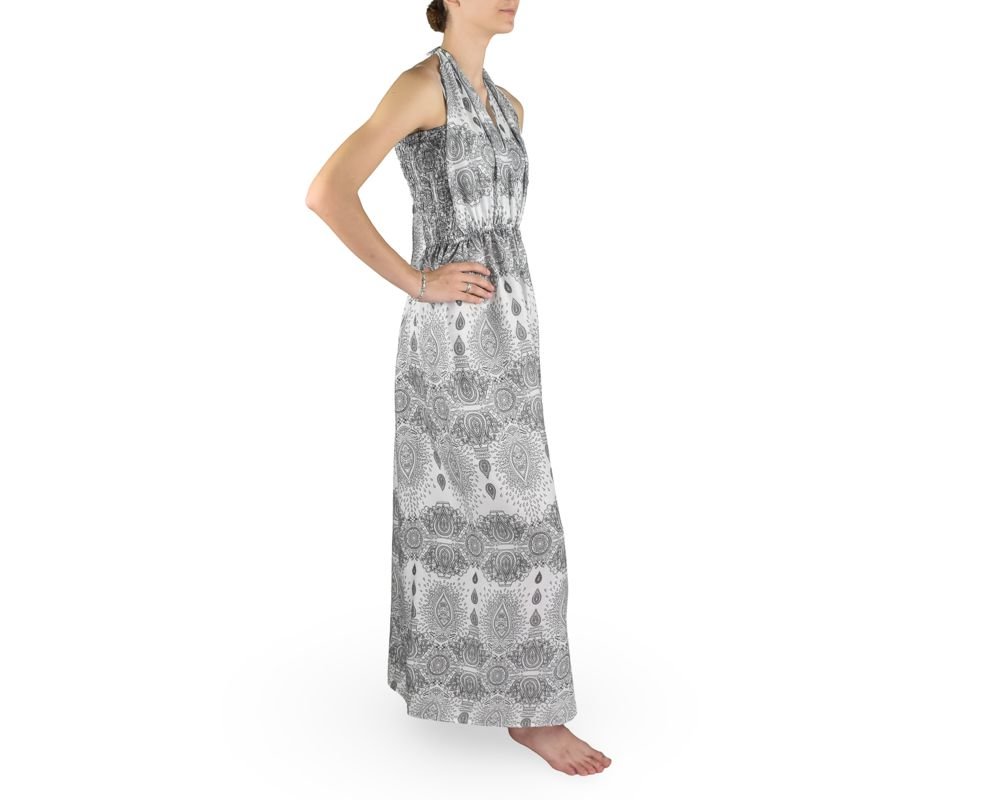 Dámské dlouhé šaty Amelia, bílé, černé mandaly