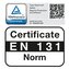 - Certifikace TÜV Rheinland, EN 131 pro profesionální použití