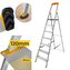 Profesionální hliníkové schůdky pro každodenní intenzivní používání s prodlouženými nášlapy 120 mm. 7 stupňů, nosnost 150 kg, výška podesty 1,47 m, max. pracovní výška 3,47 m. Integrovaná polička na nářadí, háček pro uchycení vědra, inovativní protiskluzové patky. Certifikace EN 131 pro profi použití.