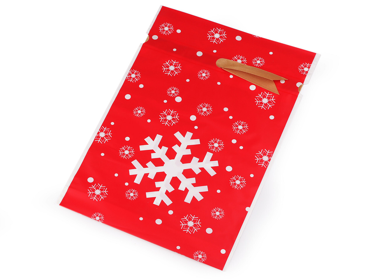 Sáček s atlasovou stuhou vánoční 23x33 cm - 50 ks - 2 červená vločka