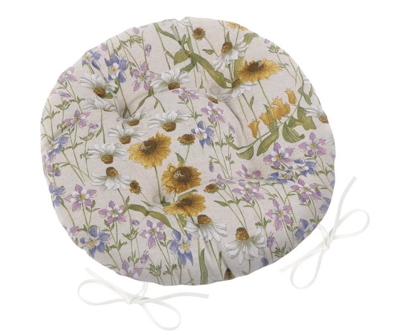 Sedák IVO kulatý prošívaný - heřmánky - průměr 40 cm