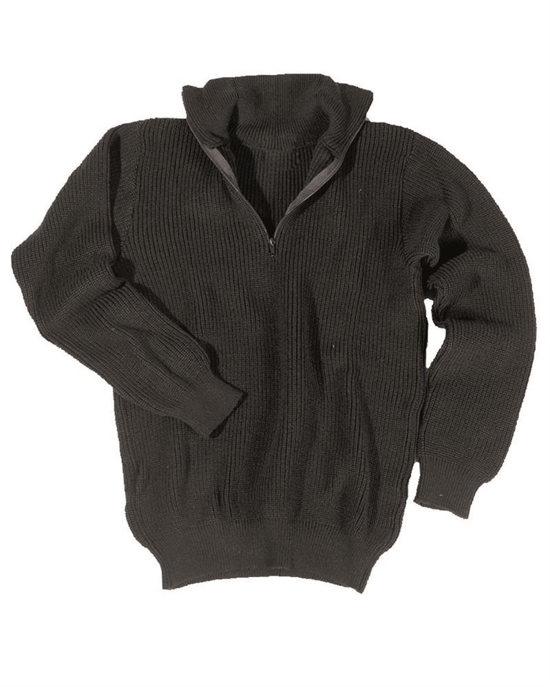 Kvalitní svetr v klasickém námořnickém provedení se zipem u krku.Vhodný pro jakýkoli účel: pro civilní nošení, do přírody, na lov, rybaření, k práci atd.Vysoký límec se zipem přikryje v případě potřeby celý krk.