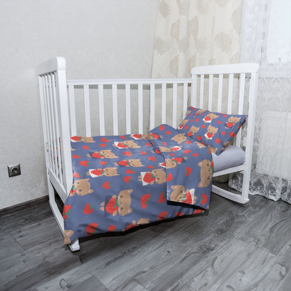 Dětské povlečení do postýlky Kočičky s jahodami: 100x135 / 40x60