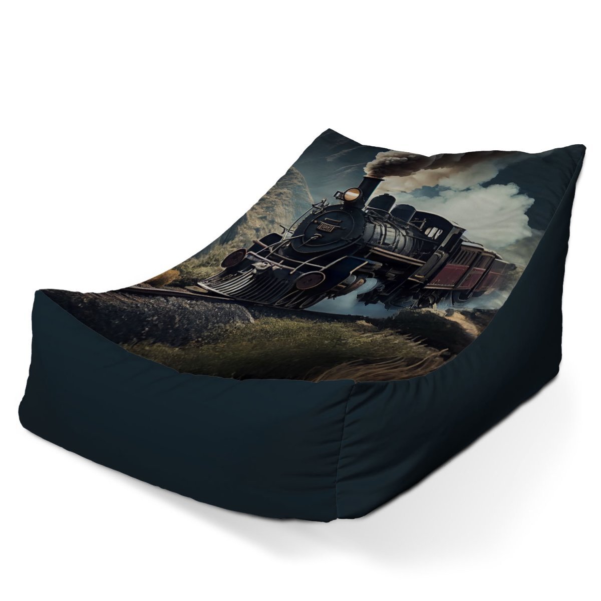 Dětský sedací vak Lounge Parní lokomotiva v horách: 80 x 95 x 50 cm