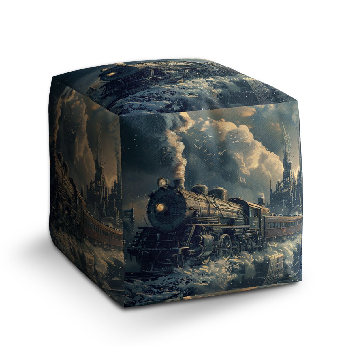 Taburet Cube Parní lokomotiva v zasněženém městě: 40x40x40 cm