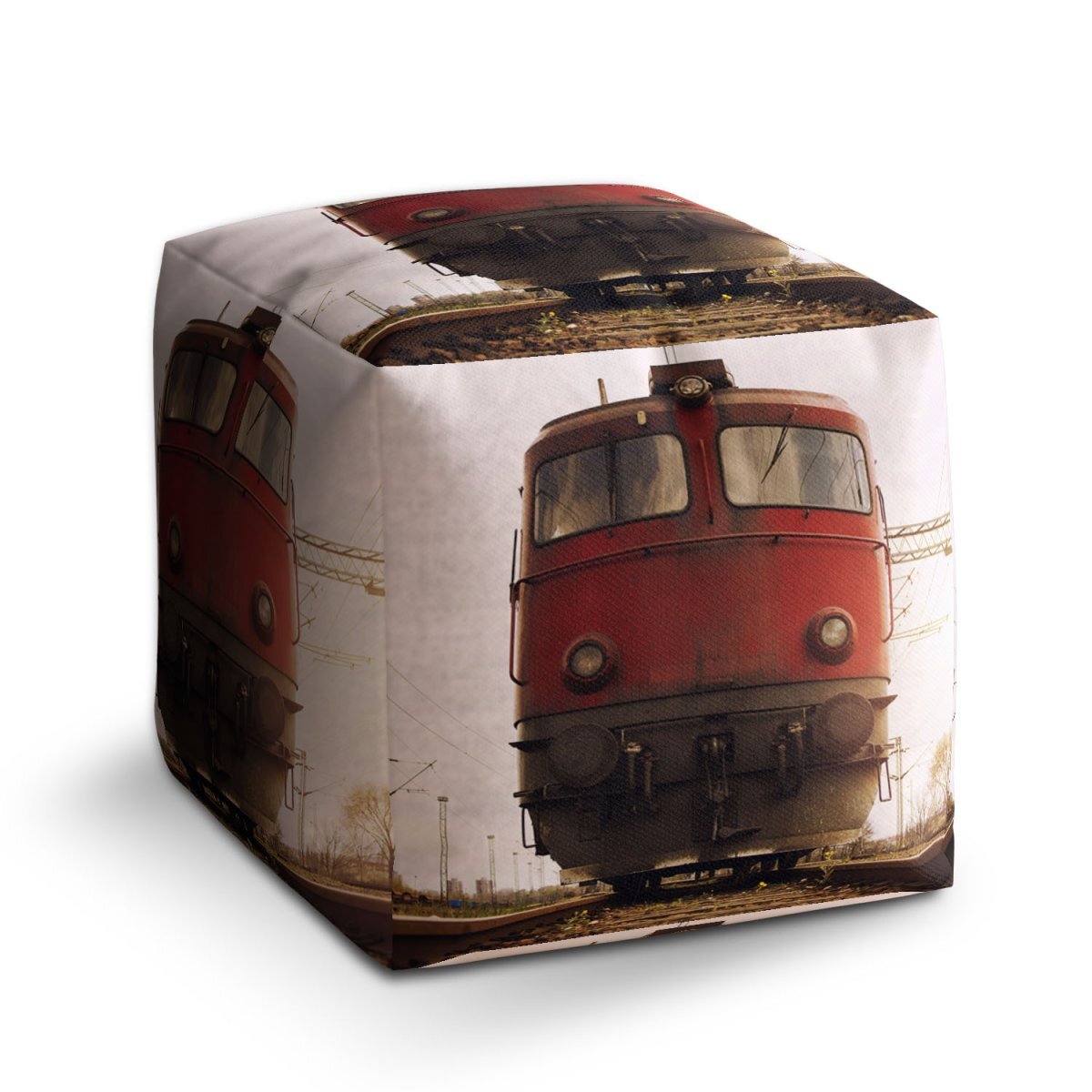 Taburet Cube Červený vlak na kolejích: 40x40x40 cm