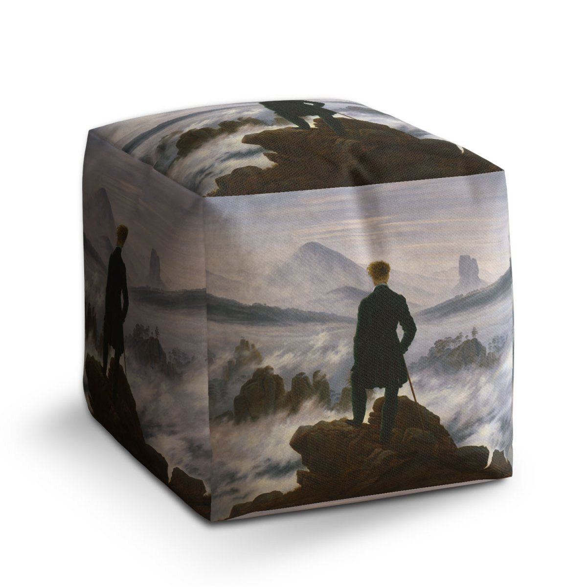 Taburet Cube Poutník nad mořem mlhy - Caspar David Friedrich: 40x40x40 cm