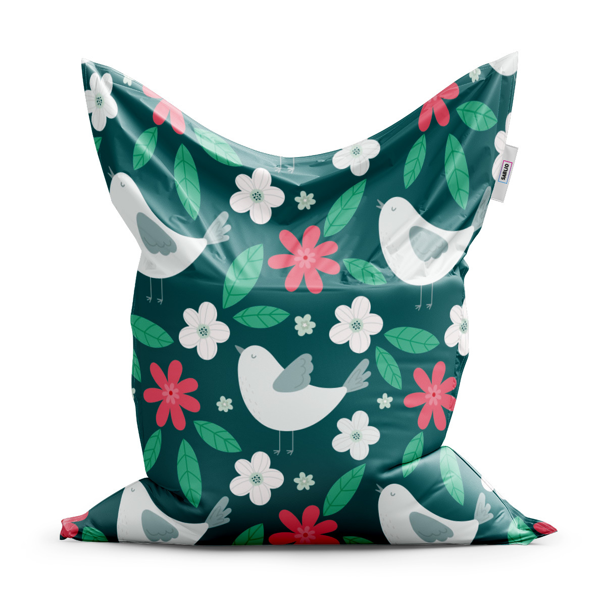 Sedací vak Červené kvítí s ptáčky: 150x100 cm