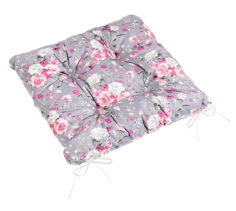 Sedák Adéla prošívaný - Květy růže růžová, šedá - 40x40 cm prošívaný